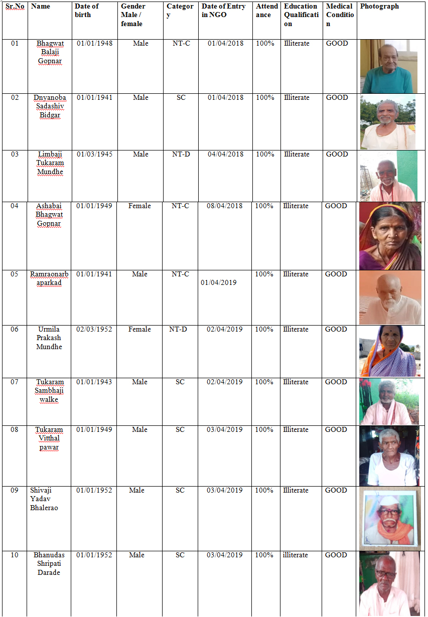 The above mentioned old age home run by Our organization which mainly focuses on elderly people get every kind of facilities for a great living. They are treated with care and responsibility amidst experienced doctors and caregivers. Here finely serve as the home with safety and security in a much better way for elderly people. Overall 25 old aged Persons Presently Residing here by taking the benefits of the Senior Citizens Home. The said Senior Citizens Home is free to all older persons without any Caste, Creed Language and colour. All the facilities are provided to these older persons free of cost. The organization has appointed qualified and experienced staff to take care of these older persons. For the said Senior Citizens Home the organization has taken a building on rental basis and all the facilities like light, water and toilet etc. are provided in the said building. The older persons are very happy about this activity of the organization.
