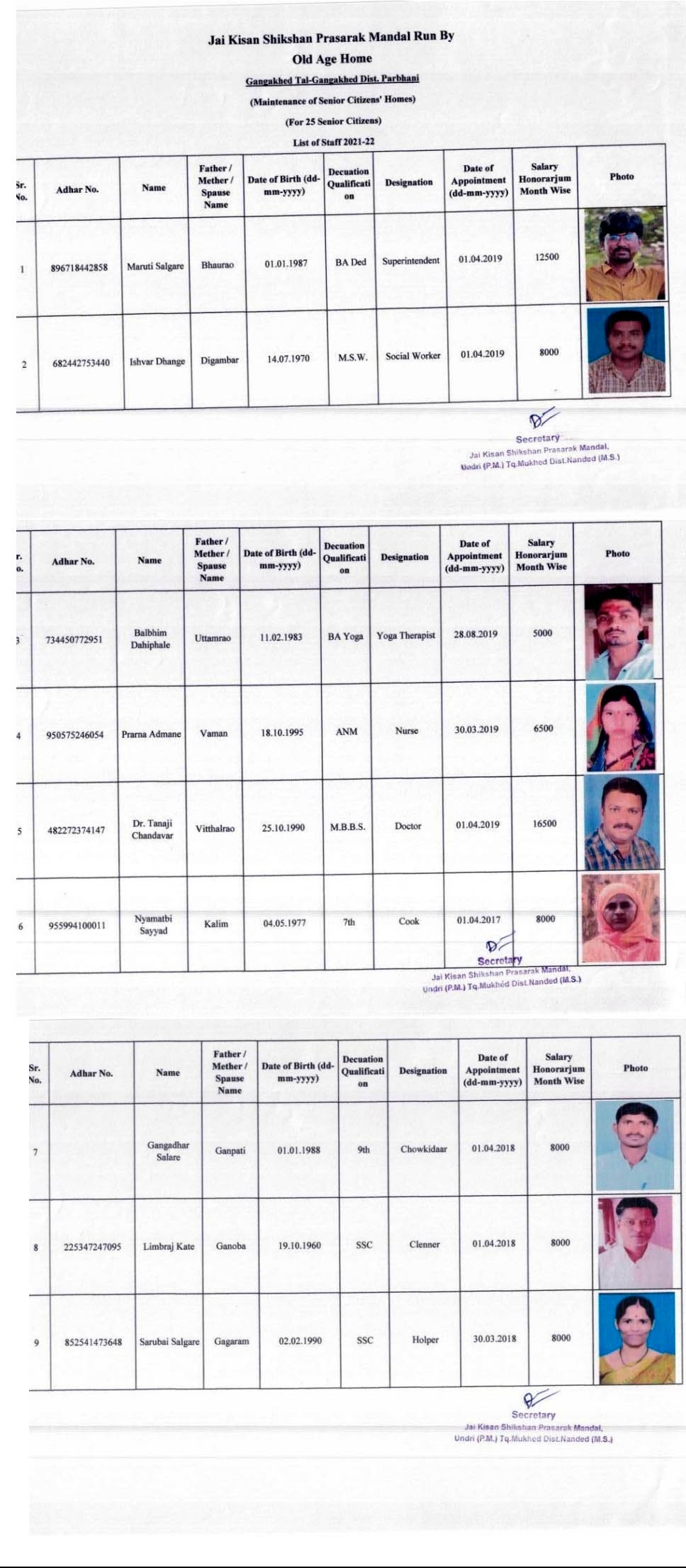 Maharashtra Old Age home GangankhedTq.Gangakhed Dist. Parbhani